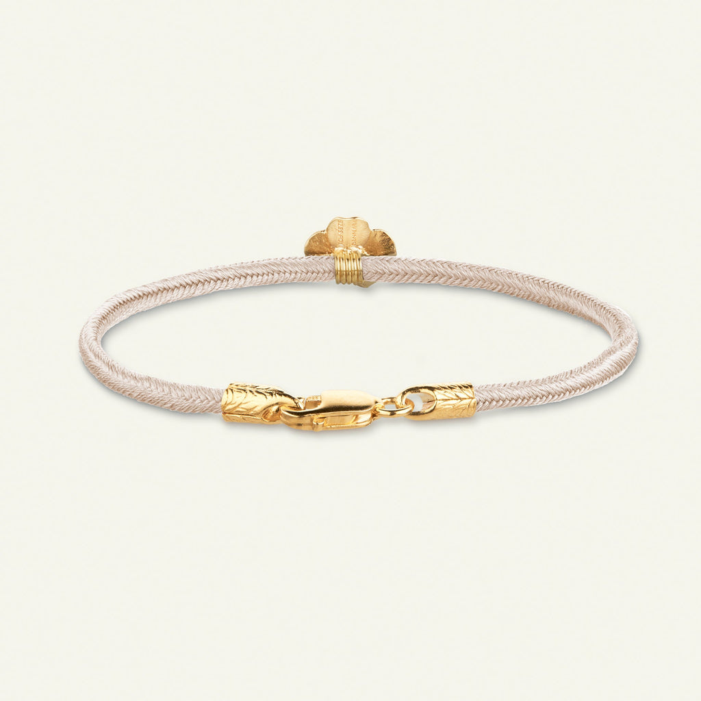 Flora Danicas firkløver-kumihimo-silkearmbånd er fremstilt i 100 % resirkulert sterlingsølv og belagt med 22 karat gull. Armbåndet er laget av 100 % japansk silke og håndlaget i Kyoto.