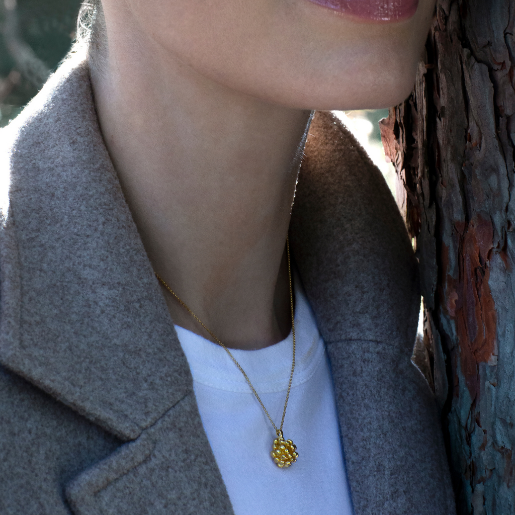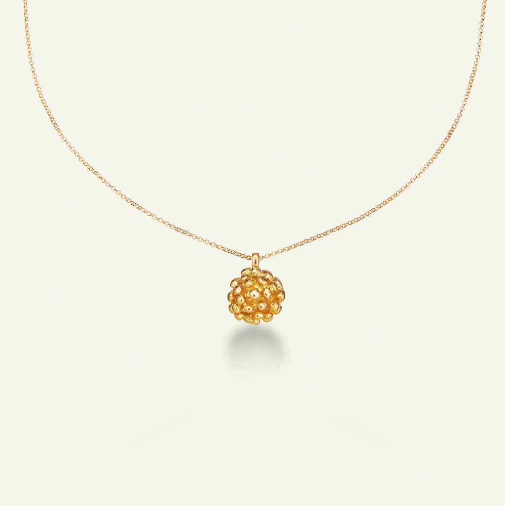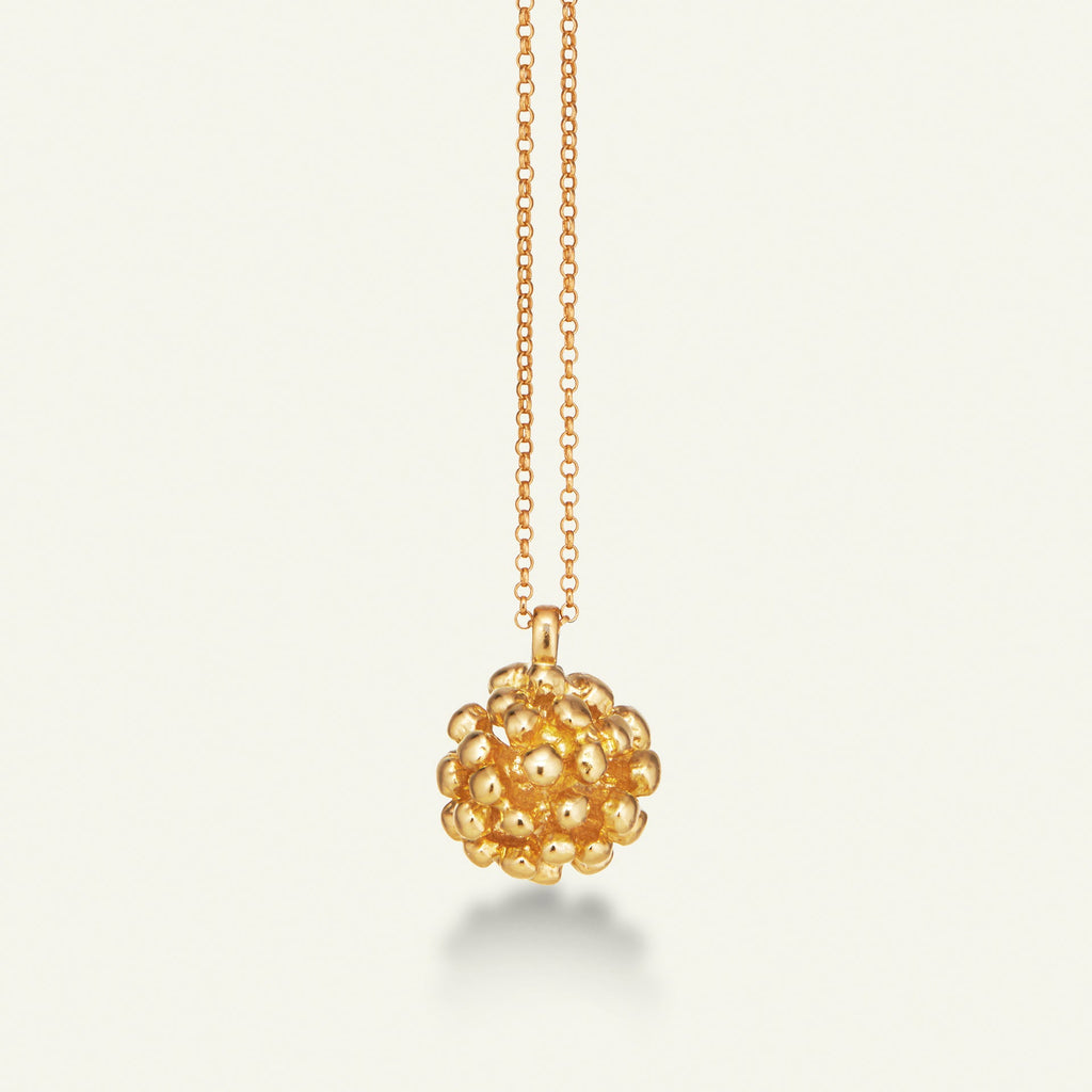 Vedhæng og kæde er udført i 100% genanvendt sterlingsølv med en 22 karat forgyldning.