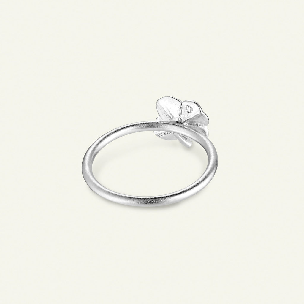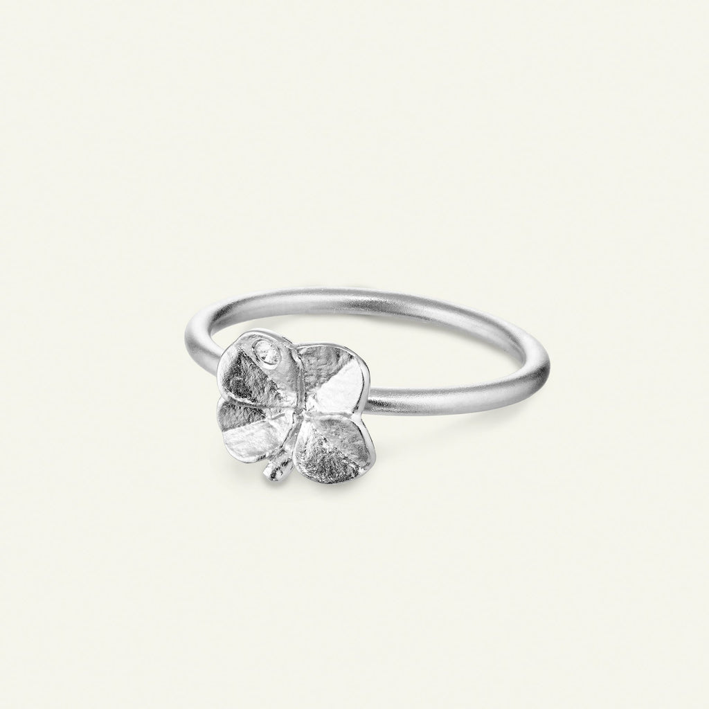 Ringen er utført i 925 sterlingsølv med et belegg av rhodium for å sikre den fineste glansen og holdbarheten. Se nøye, så vil du finne en glitrende zirkon på det ene bladet.