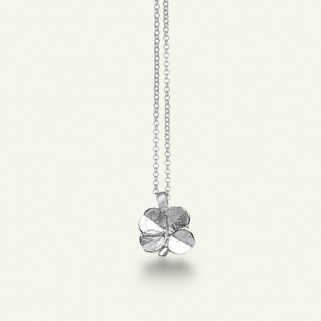 Firkløver halskjede med anheng sølv med justerbar kjede