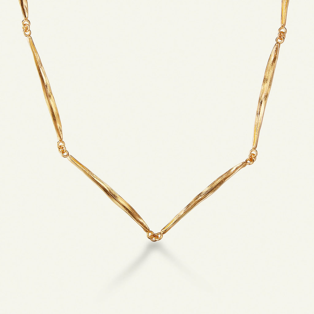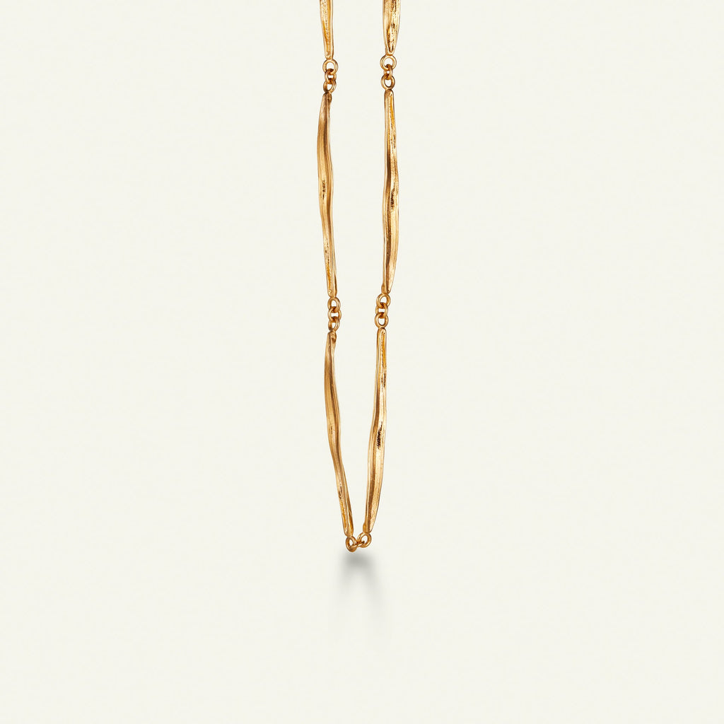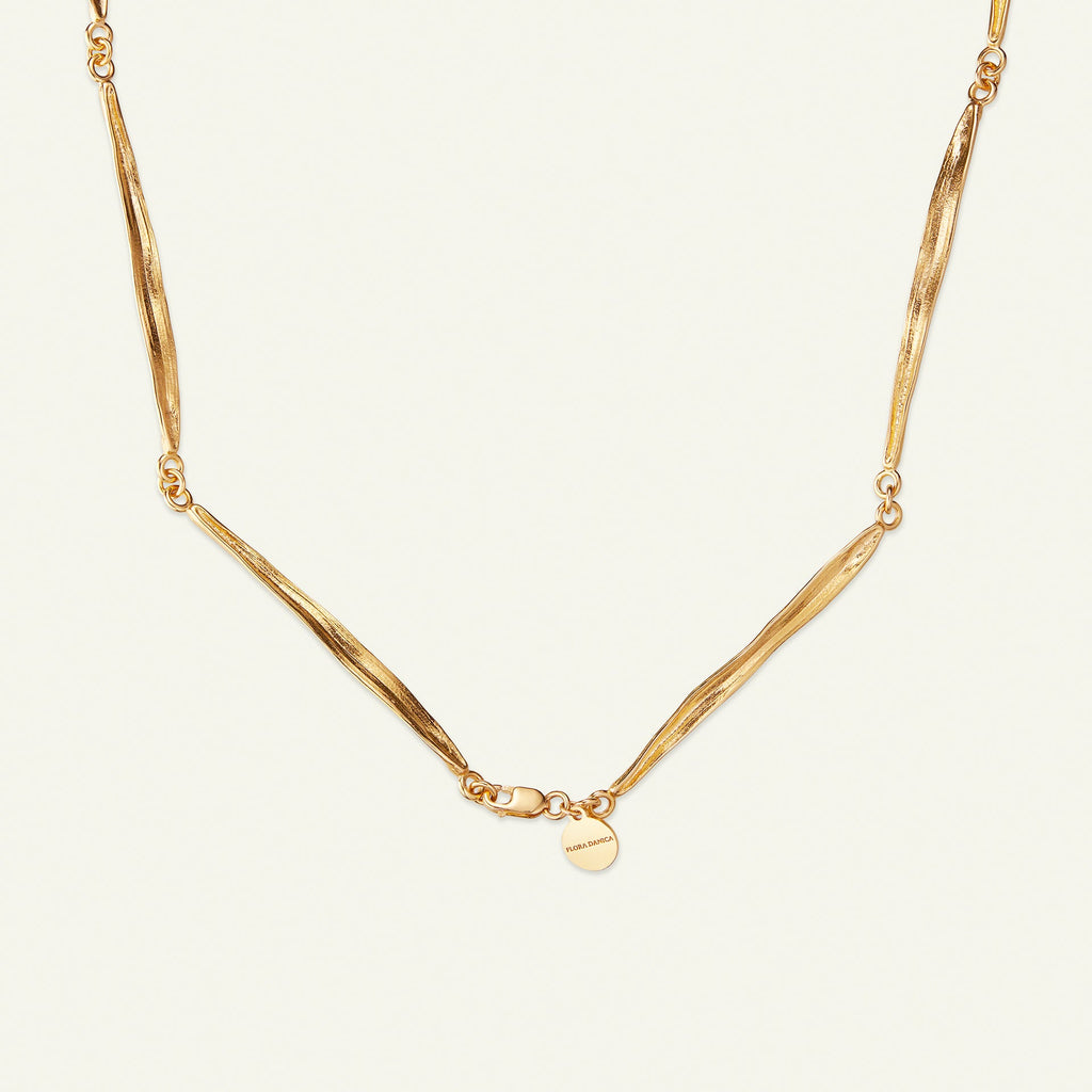 Med sin naturlige og organiske form fremhever Flora Danicas gresshalskjede din egen naturlige skjønnhet. Den elegante kjeden er laget i sterlingsølv forgylt med 22 karat gull. Et markant, sofistikert og unikt smykke fra Flora Danicas ikoniske gresskolleksjon. I full lengde måler kjeden 60 cm, men den kan enkelt gjøres kortere ved å feste låsen et annet sted på kjeden.