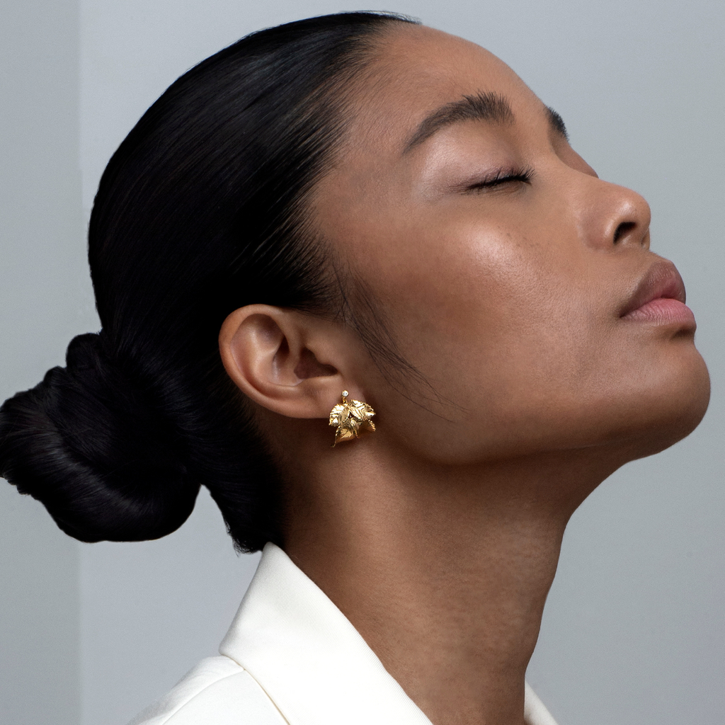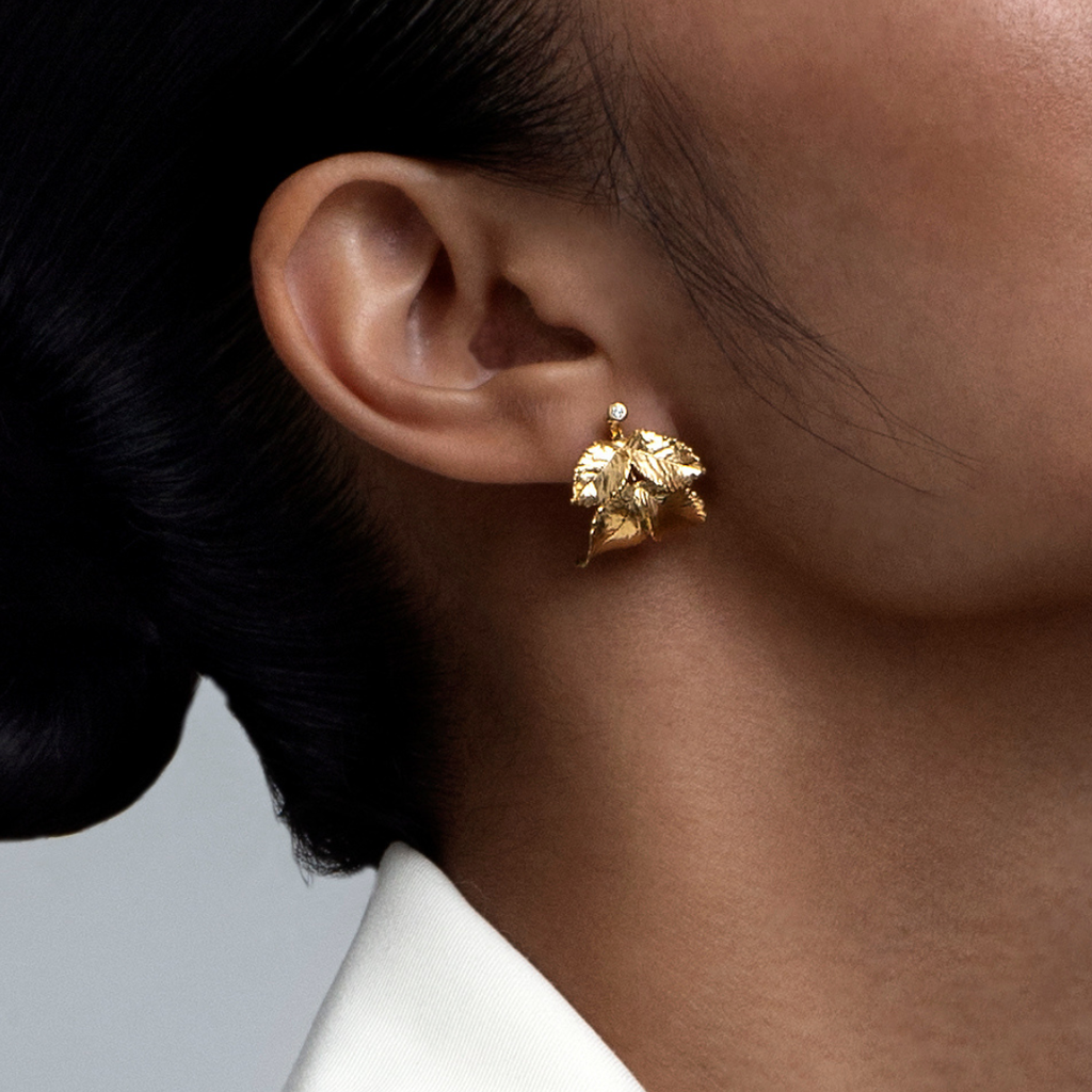Hver ørering er formet etter et ekte rosenblad, bevart i Flora Danicas historiske arkiver og gjenskapt i forgylt sterlingsølv med den største respekt for naturens fine detaljer. De levende bladnervene og myke linjene gir smykket et organisk og poetisk uttrykk. Øverst på hver ørering sitter en gnistrende diamant som fanger lyset og tilfører et diskret preg av eksklusivitet.