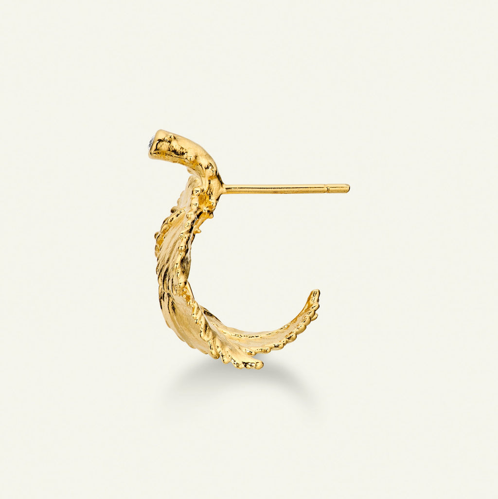 Øreringene er håndlaget i 100 % resirkulert sterlingsølv og belagt med 22 karat bærekraftig, resirkulert gull. Høyde: 2,0 cm. Bredde: 1,8 cm. Et smykke der naturens skjønnhet og håndverk forenes i et tidløst uttrykk – elegant, sterkt og unikt.